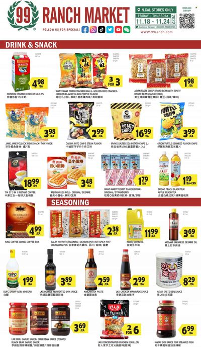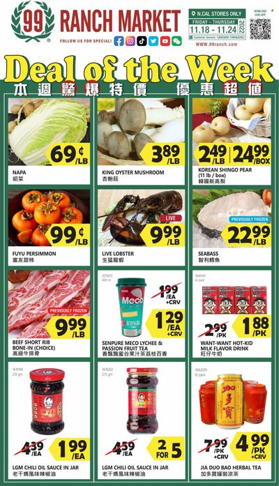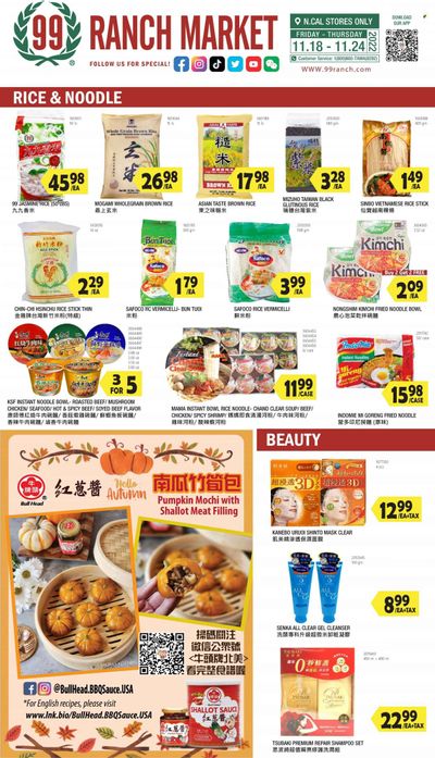 99 Ranch Market (92, CA) Weekly Ad Flyer Specials November 18 to November 24, 2022