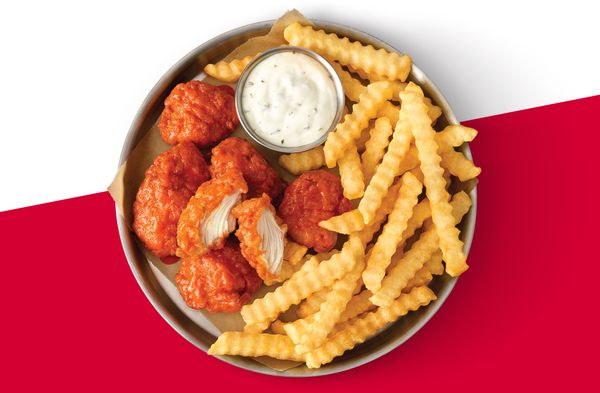 Buffalo Boneless Wings can be purchased in packs of 6 or 9 pieces, and are also available as part of an Arby's combo meal with a side of crinkle-cut fries and the fountain drink of your choice.