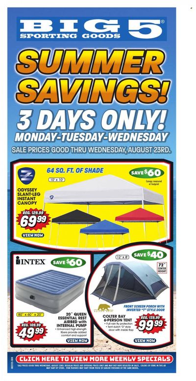 Big 5 (AZ, CA, CO, ID, NM, OR, UT, WA) Weekly Ad Flyer Specials August 21 to August 23, 2023