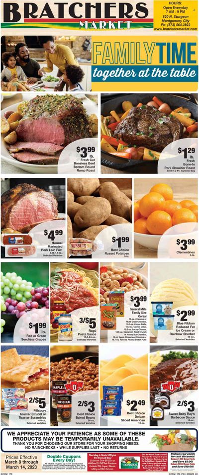 Bratchers Market (MO) Weekly Ad Flyer Specials March 8 to March 14, 2023