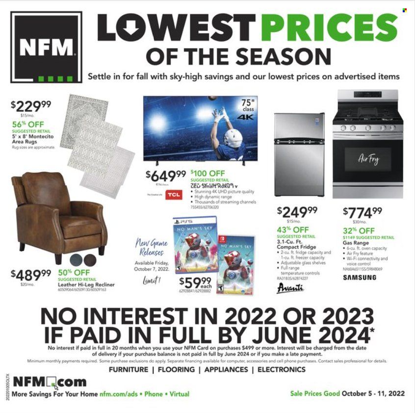 Nebraska Furniture Mart (IA, KS, NE, TX) Weekly Ad Flyer Specials October 5 to October 11, 2022