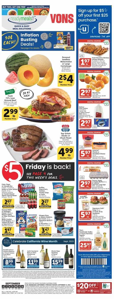 Vons (CA) Weekly Ad Flyer Specials September 6 to September 12, 2023
